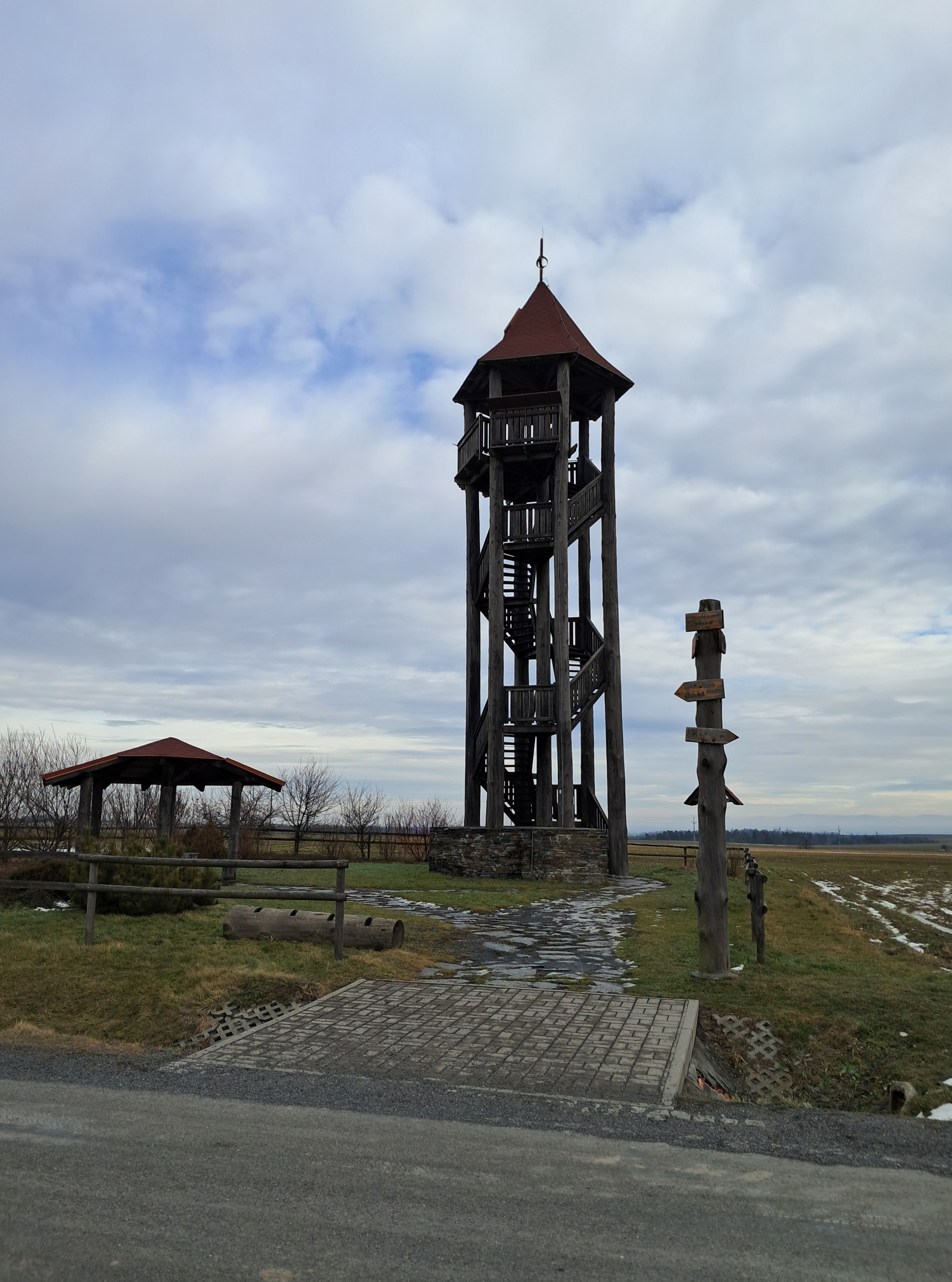 Pokud se chcete vyhnout návratu stejnou cestou, můžete zvolit alternativní trasu. Tato cesta vás povede skrze malebnou krajinu a nabídne klidnější a příjemnější atmosféru než hlavní silnice. Z rozhledny se vydejte zpět směrem ke Slatině a hned za cedulí obce odbočte vpravo. Pokračujte kolem fotbalového hřiště, které budete mít po pravé ruce, a na konci hřiště odbočte vpravo na polní cestu. Asi po půl kilometru narazíte na přístřešek, kde si můžete odpočinout. To, že pořád vidíte rozhlednu před sebou, může být matoucí a může vzniknout pocit, že se k ní vracíte. Brzy však narazíte na rozcestí, kde